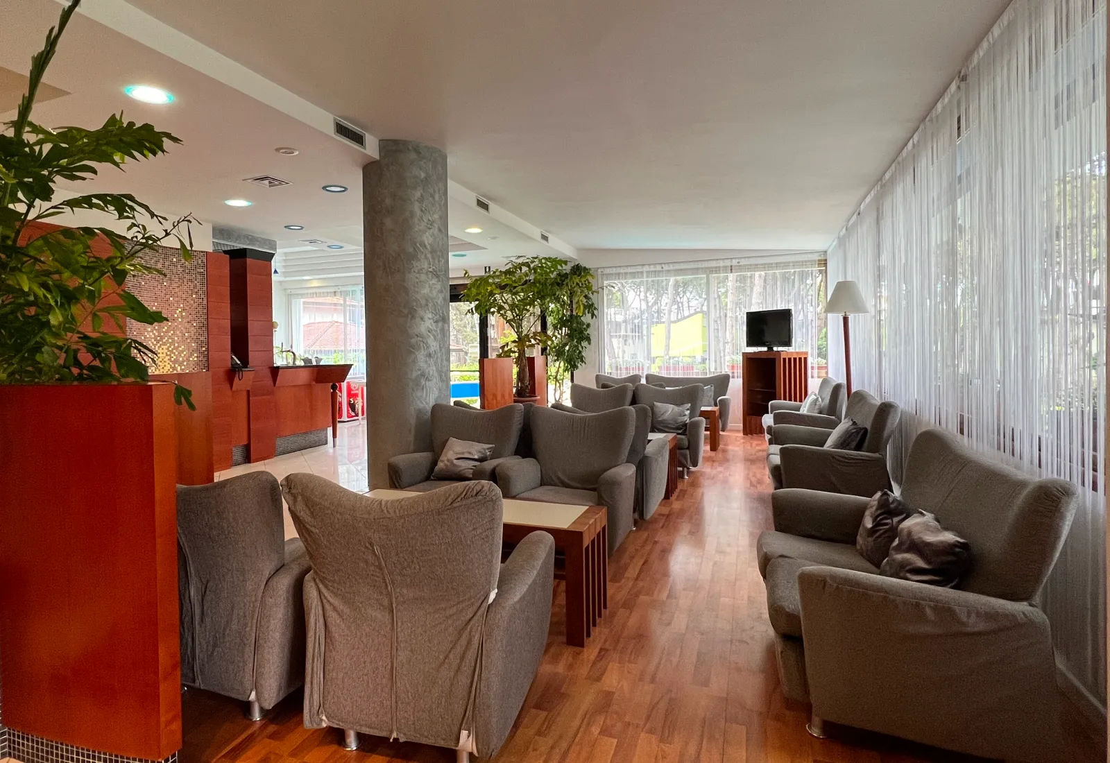 The building is completely barrier-free and boasts a solarium with pool, which also has a children’s pool that’s 80 cm deep, next to the bar area, open from 7:00 am to 11:00 pm.